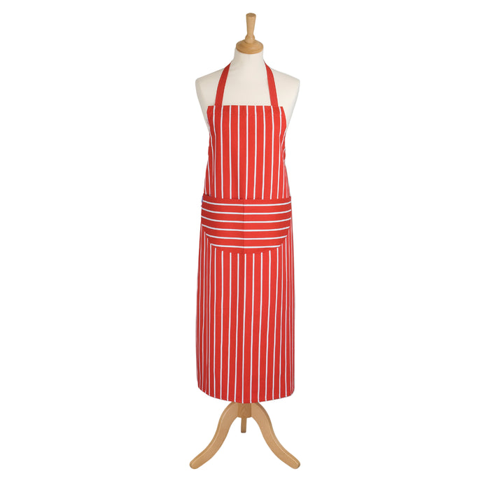 Title: Rushbrookes Butchers Stripe Adult Apron (Made in UK) - Red